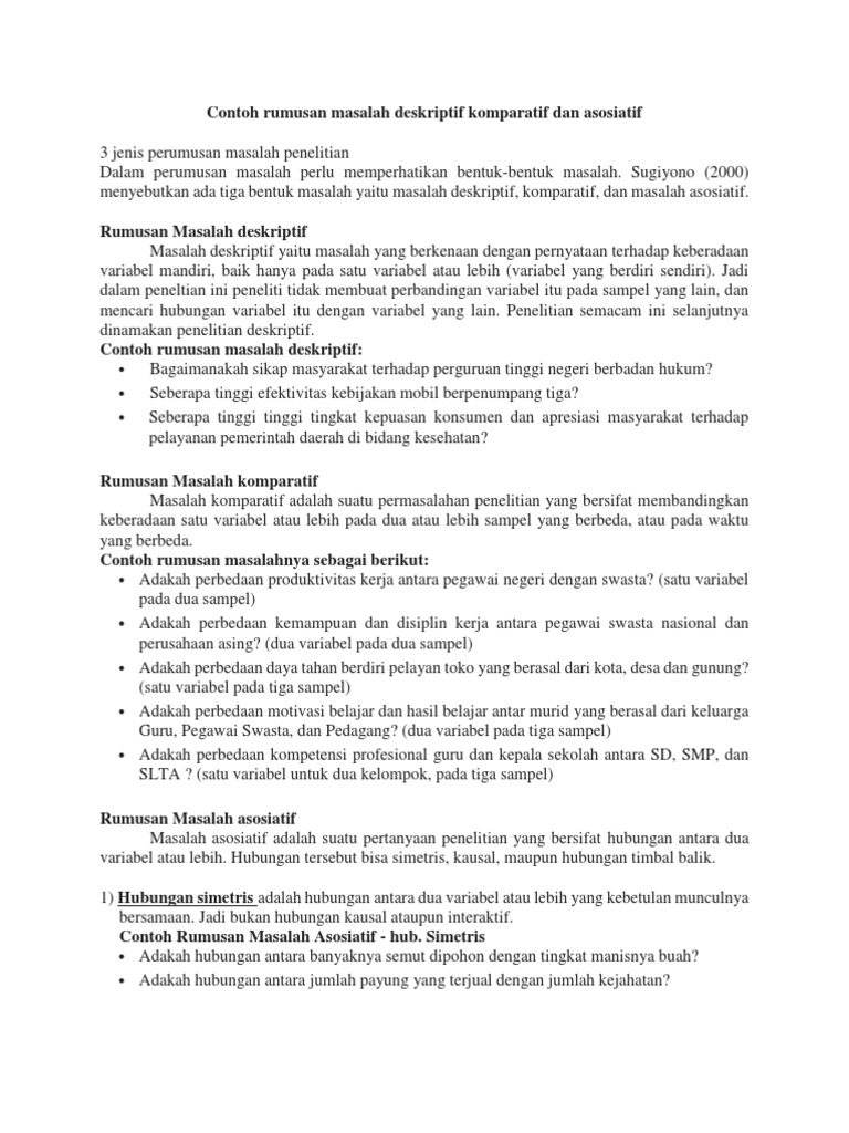Contoh Rumusan Masalah Deskriptif Komparatif Dan Asosiatif Pdf